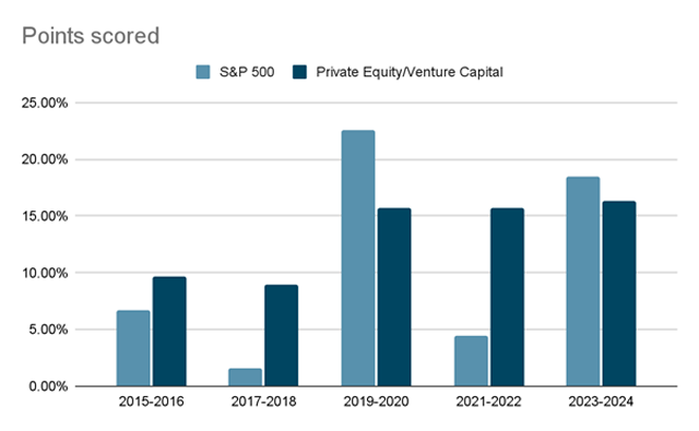 Comparison Chart of the Average Annual Return of Private Equity vs Venture Capital vs Public Market