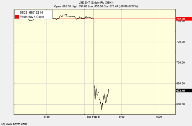Shares in Entain dropped 11.7% following the announcement on Tuesday morning.